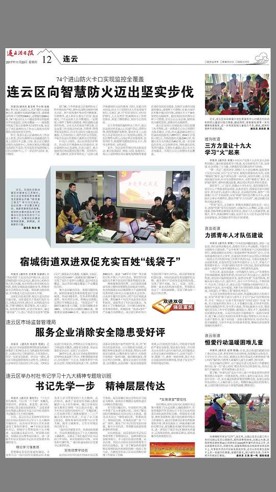 近日,公司黨支部聯(lián)動(dòng)東園社區黨委、江蘇銀行黨支部等單位,在公司三樓會(huì )議室聯(lián)合舉行“新黨章之我見(jiàn)”學(xué)習討論活動(dòng)?;顒?dòng)由墟溝街道黨工委紀委書(shū)記曹文輝主持,東園社區黨委書(shū)記陳秀榮、公司黨支部書(shū)記劉新吉以及公司黨支部部分黨員參加了學(xué)習討論活動(dòng)。曹書(shū)記結合十九大精神對新黨章修改的背景、修改的主要內容及學(xué)習的主要要點(diǎn)進(jìn)行了耐心細致的講解,與會(huì )人員進(jìn)行了熱烈的討論。公司黨支部書(shū)記劉新吉,結合我單位作為科研設計行業(yè)企業(yè)的特點(diǎn),以身邊小事、公司項目為出發(fā)點(diǎn),延伸討論了新黨章變化、十九大精神對我們工作和生活的影響和指導意義,并號召公司全體黨員認真學(xué)習和領(lǐng)會(huì )十九大精神和新黨章內容。2017年11月23日的《連云港日報》對此活動(dòng)進(jìn)行了圖文報道。