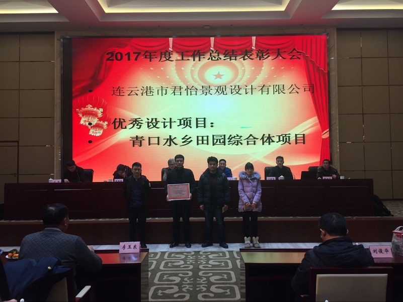 大會(huì )開(kāi)始,君怡景觀(guān)公司總經(jīng)理宣布“摜蛋比賽”獲獎人員名單并頒發(fā)獎品。君怡景觀(guān)公司副總經(jīng)理宣讀了景觀(guān)公司《關(guān)于表彰2017年度優(yōu)秀項目和優(yōu)秀人員的決定》。建明達監理公司總工宣讀了監理公司《關(guān)于表彰2017年度優(yōu)秀監理部、優(yōu)秀人員的決定》。董事會(huì )領(lǐng)導、各公司領(lǐng)導為受表彰先進(jìn)集體和個(gè)人頒發(fā)了榮譽(yù)證書(shū)和獎金,并同獲表彰人員一起合影留念。