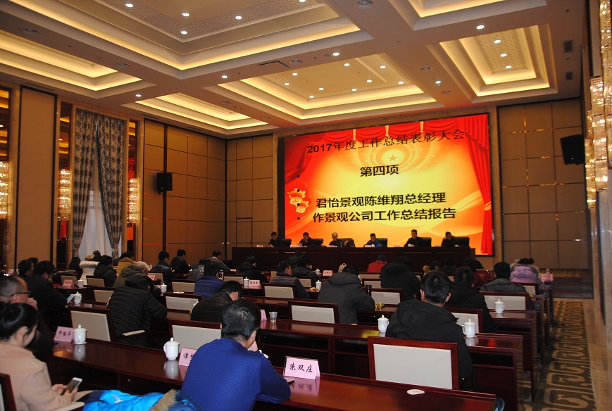 下午五點(diǎn),2017年工作總結表彰大會(huì )在溫泉大酒店會(huì )議中心準時(shí)召開(kāi)??偣径聲?huì )領(lǐng)導李清洋、王家松、徐遠航,君怡景觀(guān)公司總經(jīng)理,建明達監理公司總經(jīng)理劉新吉,建明達監理公司總工姚加千,各職能部門(mén)經(jīng)理、各項目總監及全體員工參加了大會(huì )。