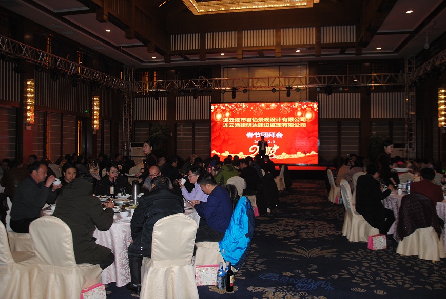晚七時(shí)新春團拜晚宴準時(shí)在宴會(huì )大廳開(kāi)始,公司領(lǐng)導與全體員工一同參加了晚宴。員工還自發(fā)排練了一臺春節聯(lián)歡晚會(huì ),有歌曲、有舞蹈、有朗誦,節目異彩紛呈,為晚宴增加了歡樂(lè )的氣氛。